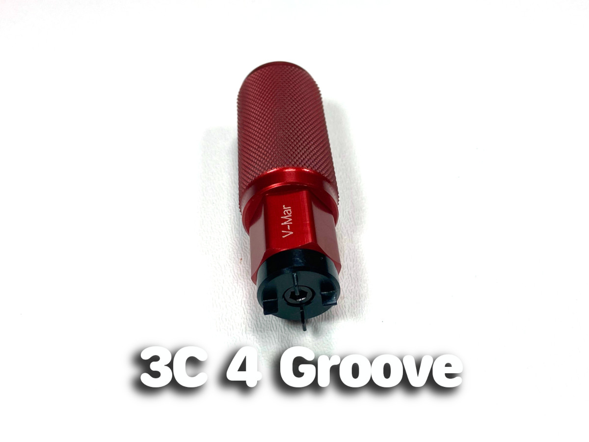 If you run into a collet that is stuck to the collet holder, place a piece or stock into the collet and give it a light tap side to side to knock it loose. Sometimes the threads can get jammed up with chips that make their way thru the slots in the collet. When you try to unscrew the collet it gets jammed up on the chips that get caught in the threads. Try spraying some lubricant (WD40 or similar) into the collet slots to try and flush them out, then place a wrench on the V-Mar collet wrench and work the collet back and forth to knock the chips loose and remove the collet.